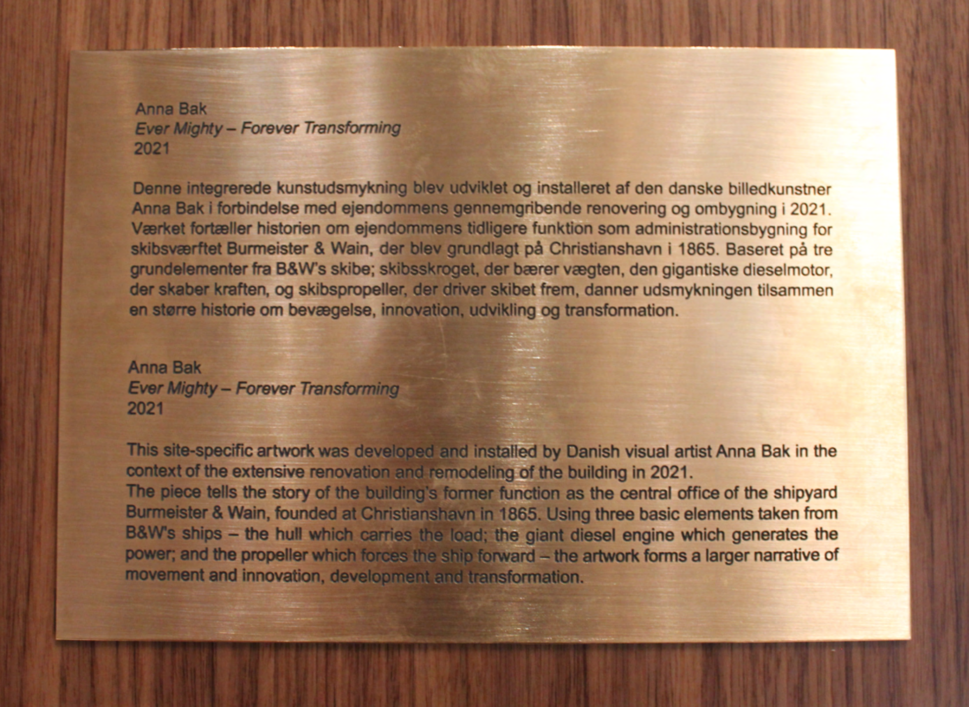 I forbindelse med DGNB-certificering til guld-niveau blev det besluttet at der skulle udføres et kunstprojekt i hotellets indgangsparti.