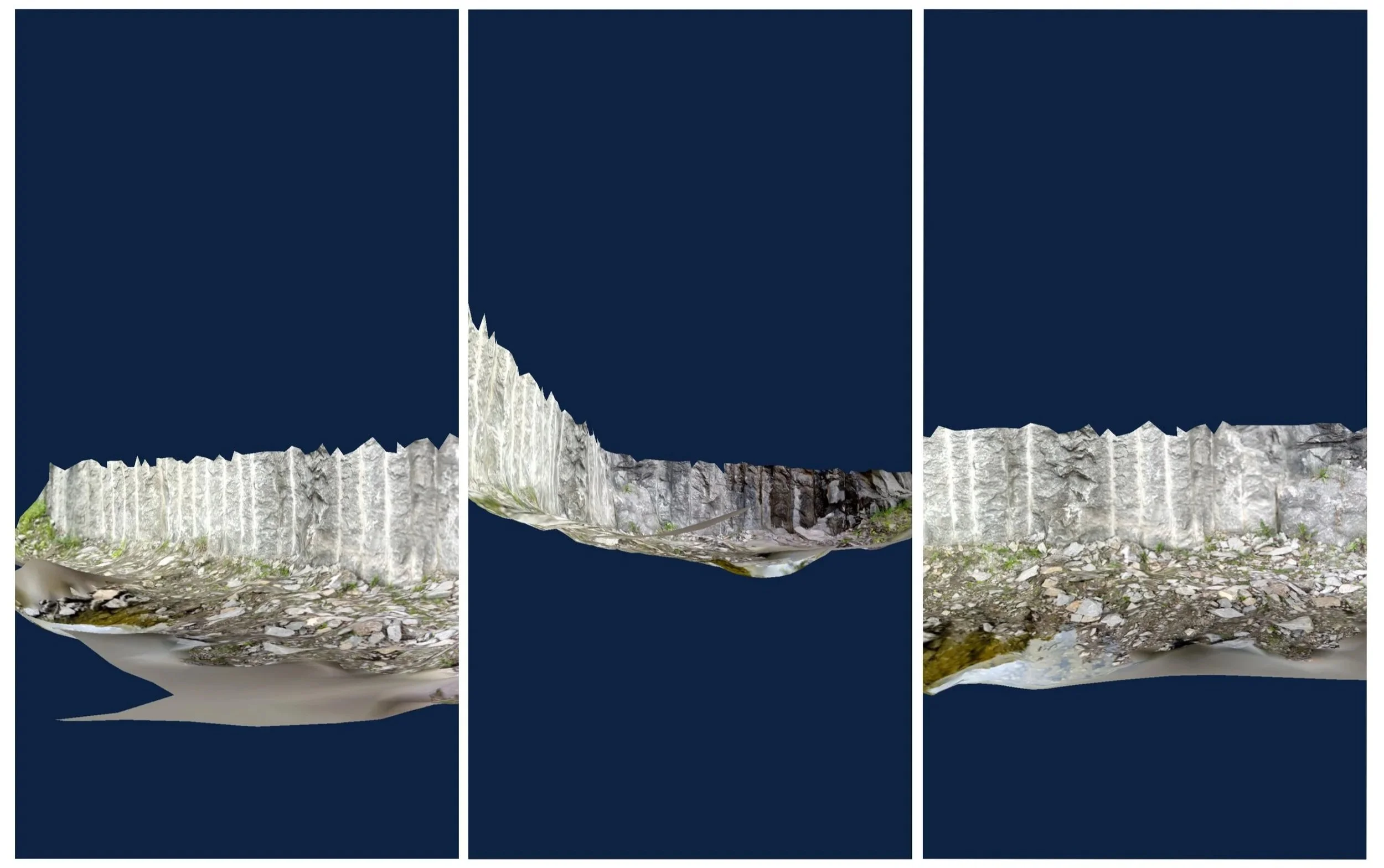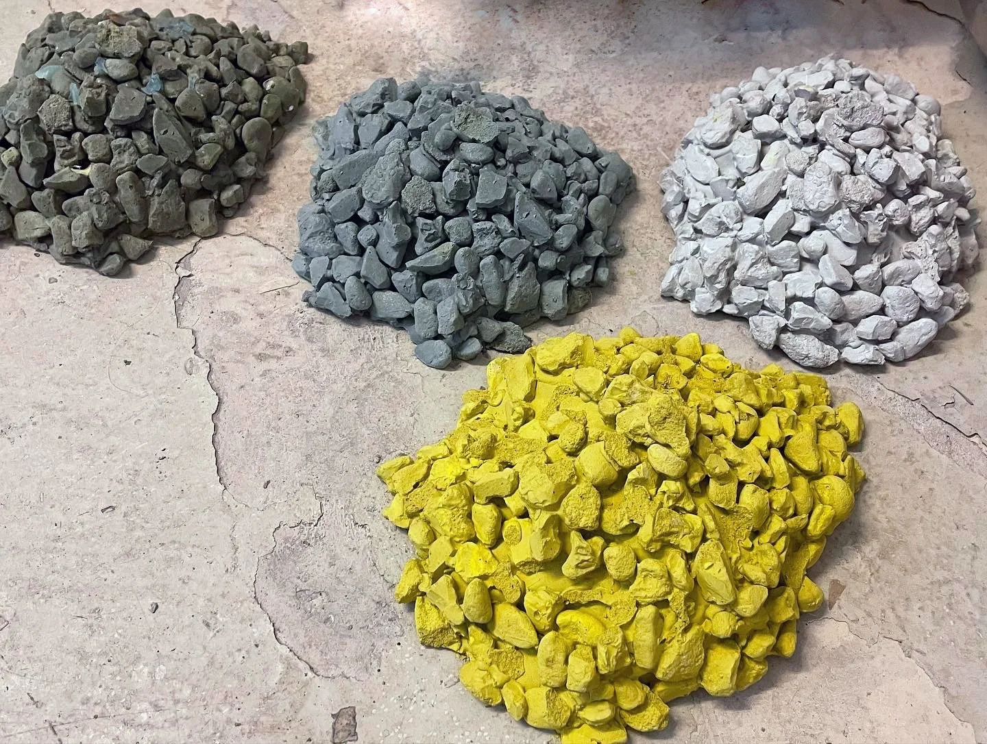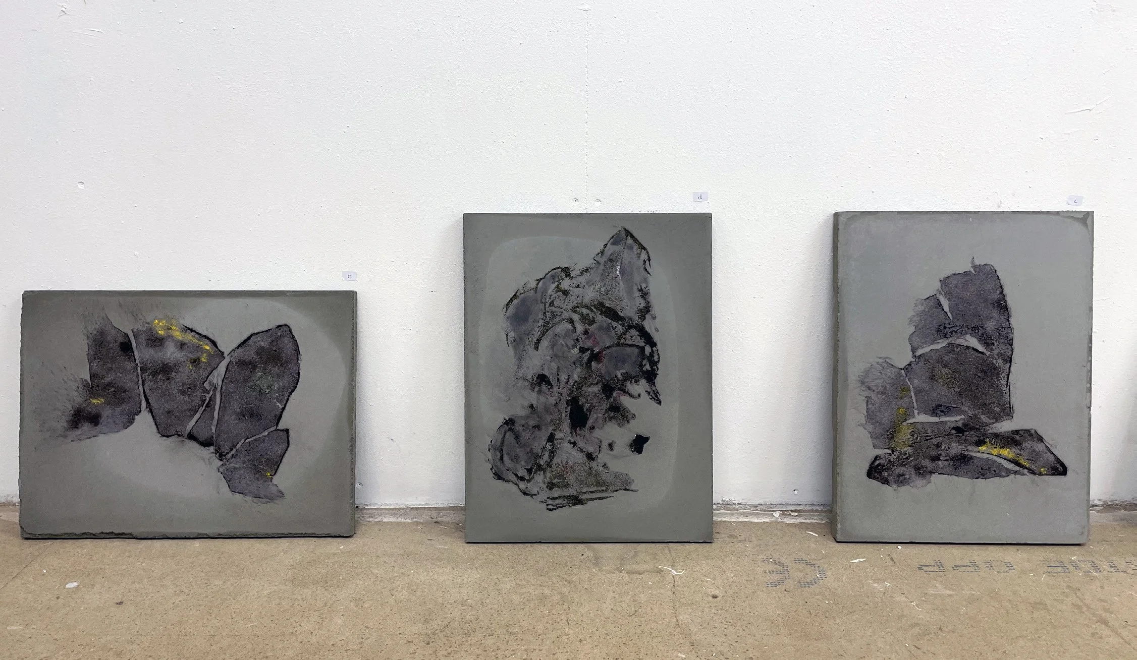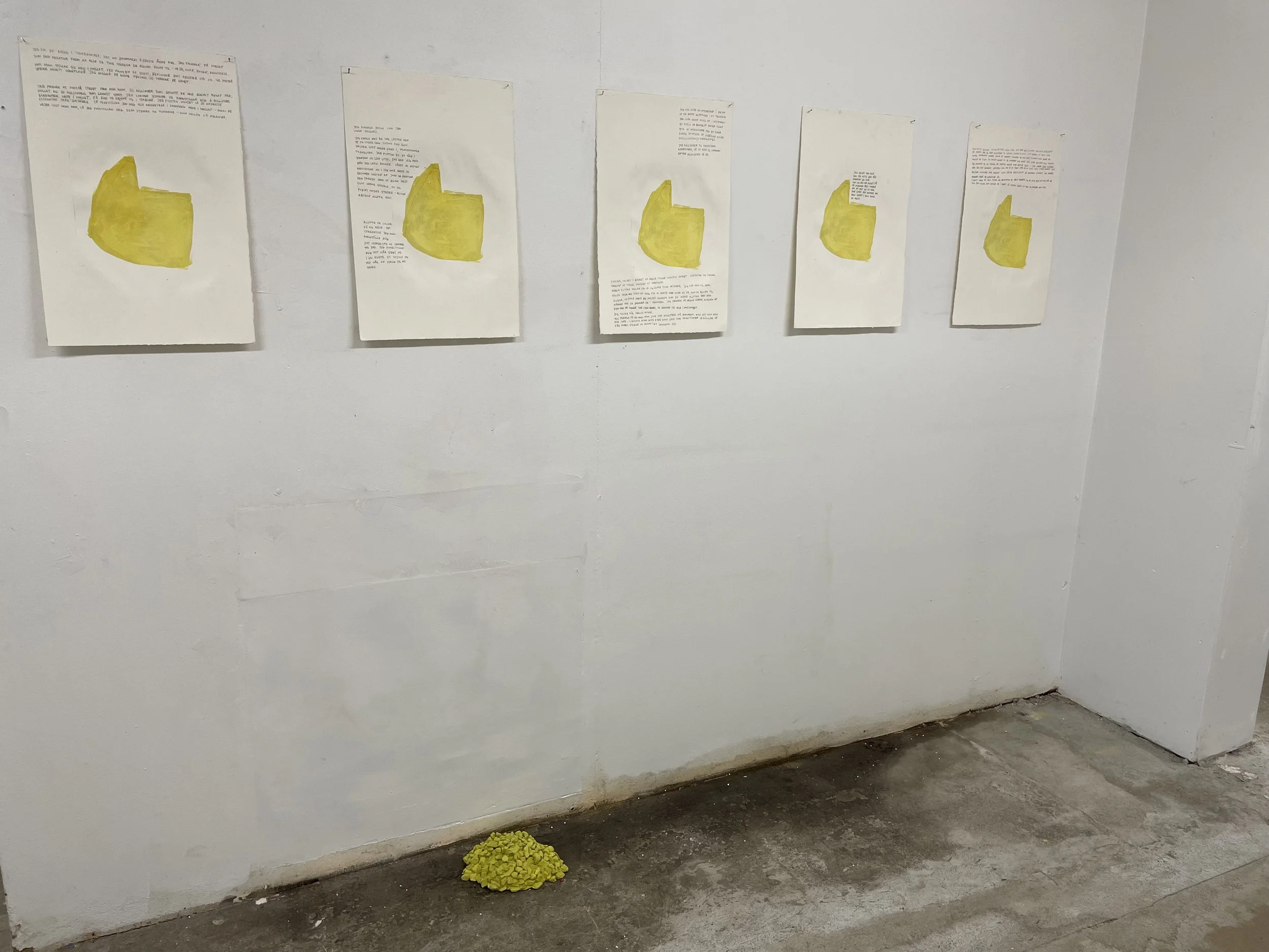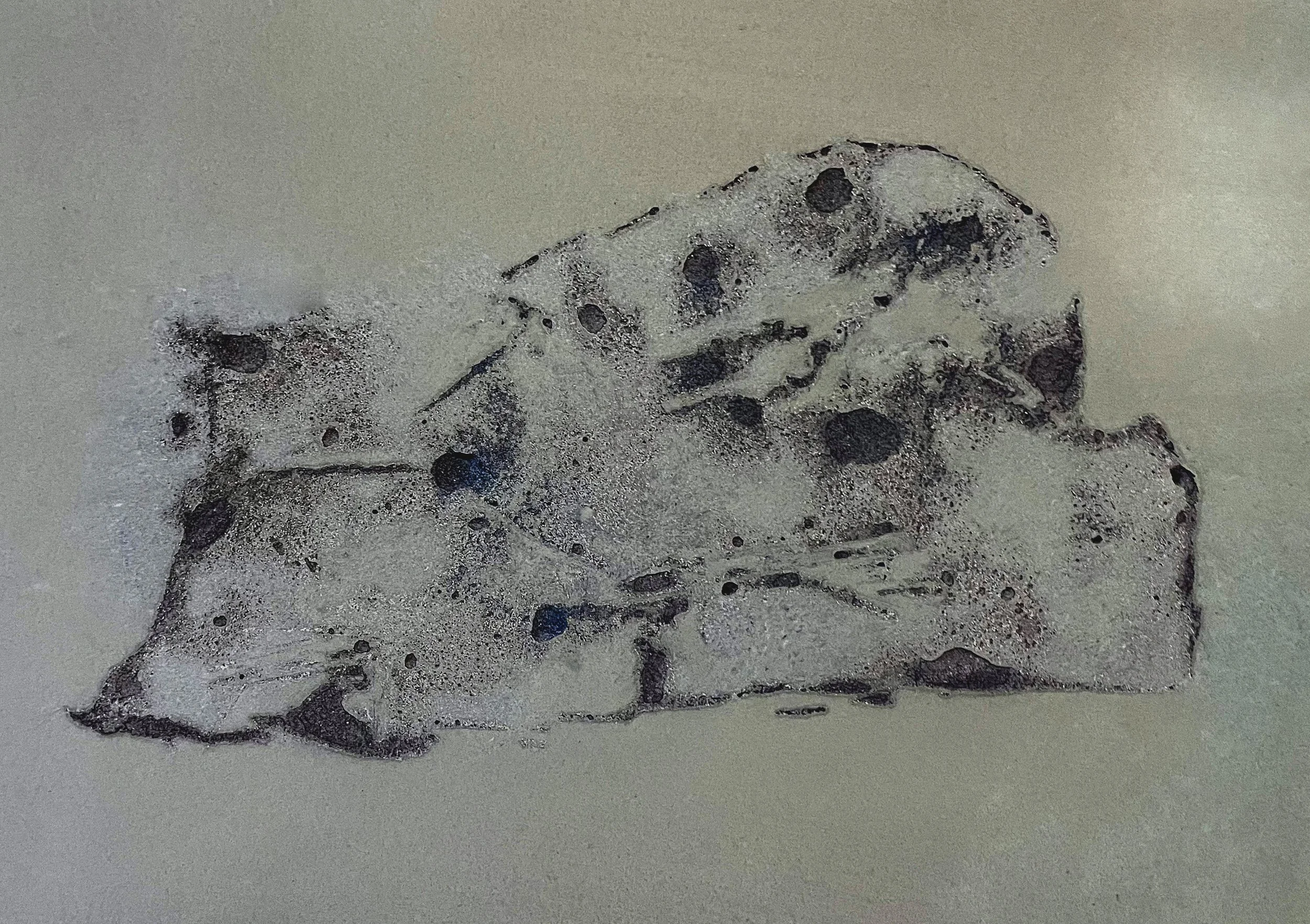 I udstillingen Vejerbod på Bornholm, undersøgte jeg betonproduktionen fra de store granitbrud. Sten og klipper fjernes fra det bornholmske landskab, der med de enorme kratere ændres for altid. Samtidig skyder bygninger støbt af dette materiale op andre steder, og bliver på den måde kraternes omvendte form. I denne bevægelse ser jeg en mulighed for at undersøge forholdet mellem hjem og materialer, bl.a. gennem fortællinger, myter og identitet knyttet til landskaber.